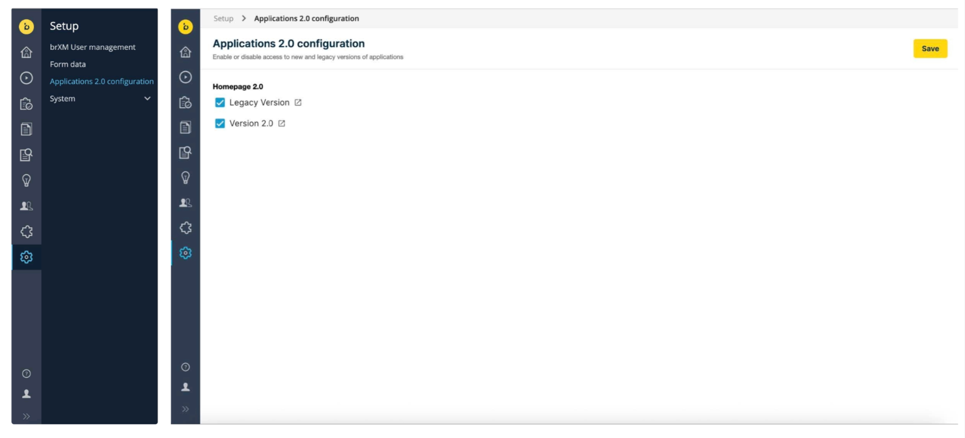 We prioritize a smooth transition. Homepage 2.0 is designed to run concurrently with the existing legacy homepage. Administrators gain full control through the Apps 2.0 Configuration GUI (found under the Setup menu), allowing them to toggle the legacy Wicket UI and the new Angular UI on or off for individual applications like Homepage 2.0. This flexibility is essential for customers who have customized the Wicket UI, allowing them to adapt when they are ready.