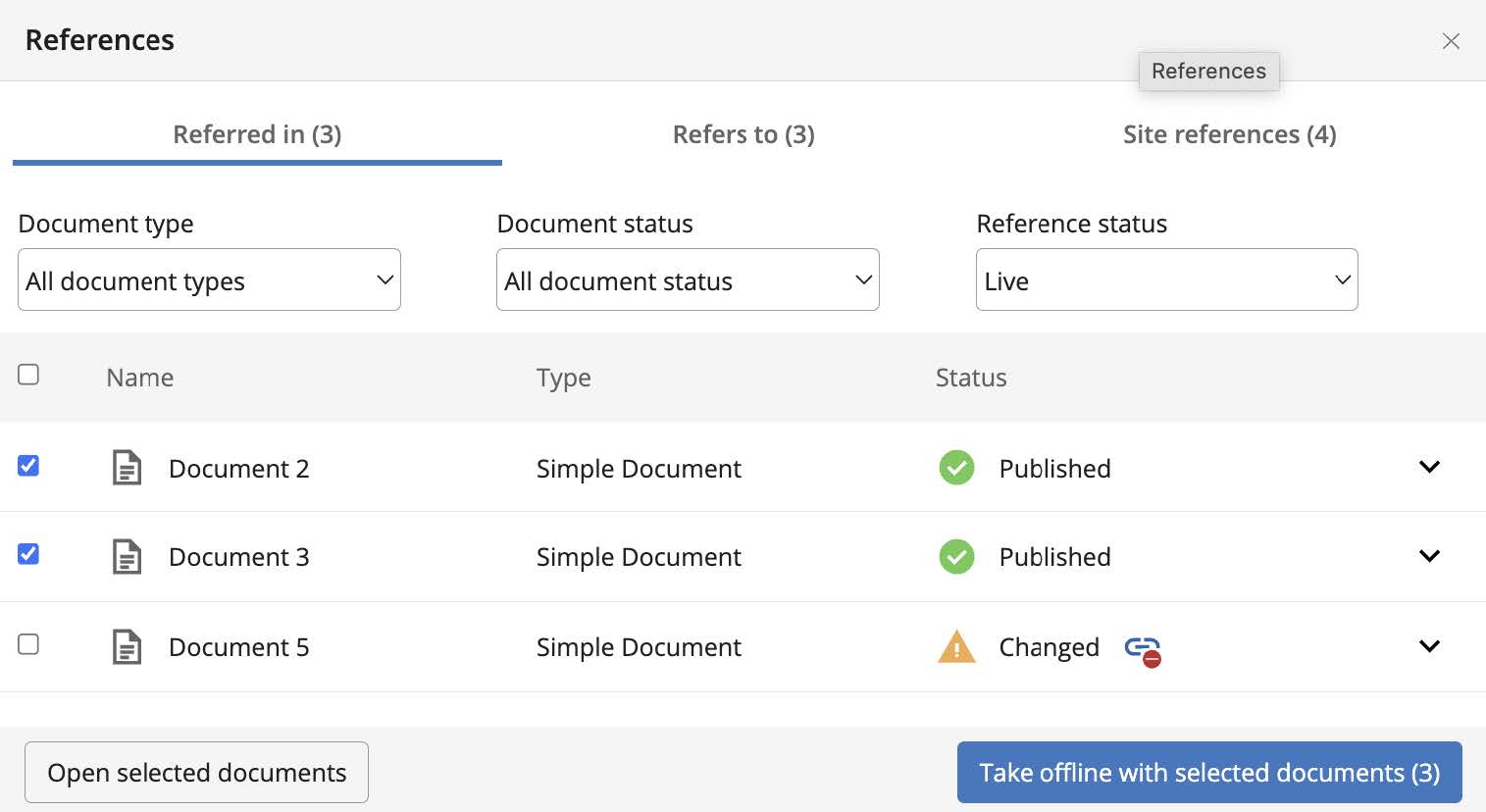 Improved visibility for documents and assets referenced in components, documents, and pages, facilitating easy tracking and management.
