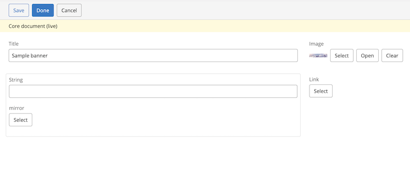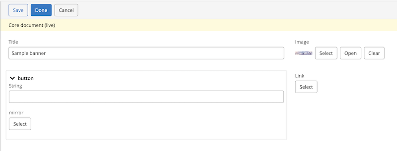 Bloomreach Experience Manager supports document fields of type compound. By default, Bloomreach Experience Manager displays any compound field with its field name as the title and collapsible functionality. It might be desired to configure the display of a compound field inside a document type to hide the title and disable the collapsible functionality to save vertical margin.