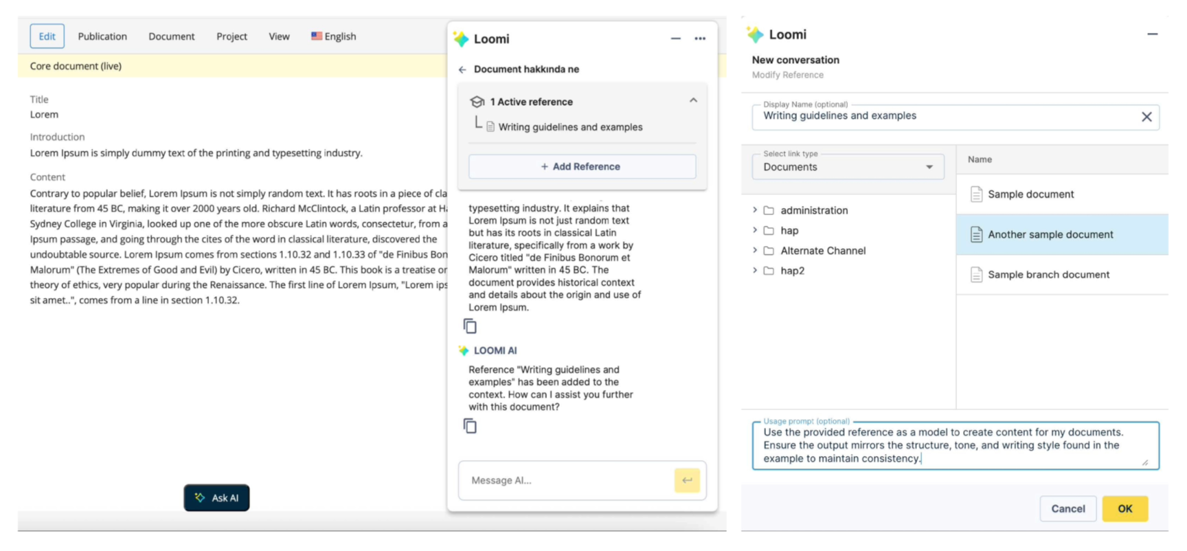 References: Add references from your CMS repository to expand the context of your chat with the content from other documents.